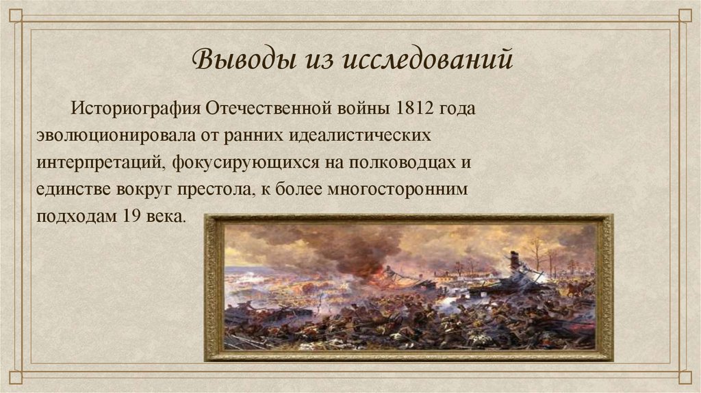 Выводы из исследованийИсториография Отечественной войны 1812 года