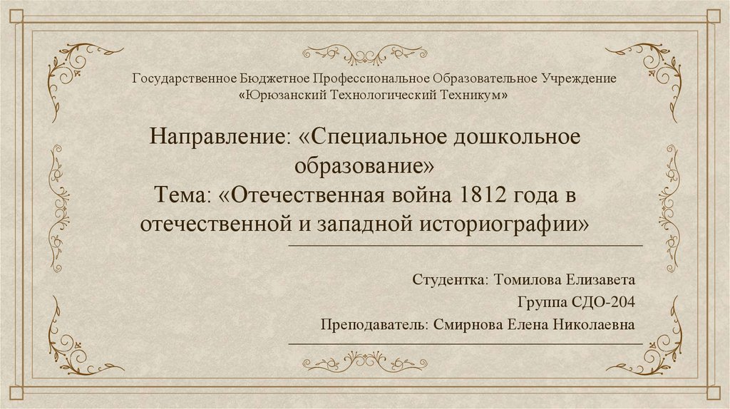 Государственное Бюджетное Профессиональное Образовательное Учреждение«Юрюзанский Технологический Техникум»