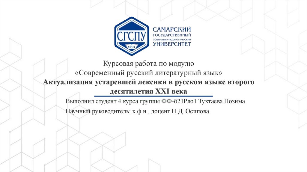 Научный руководитель: к.ф.н., доцент Н.Д. Осипова