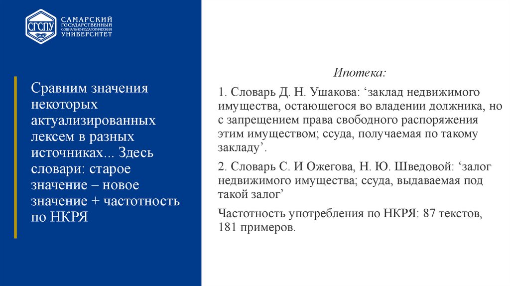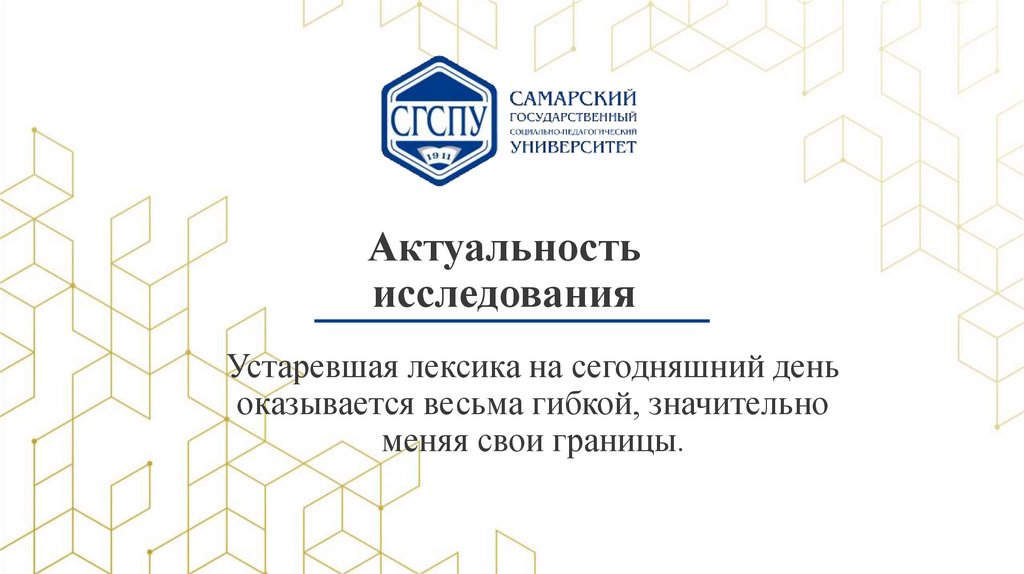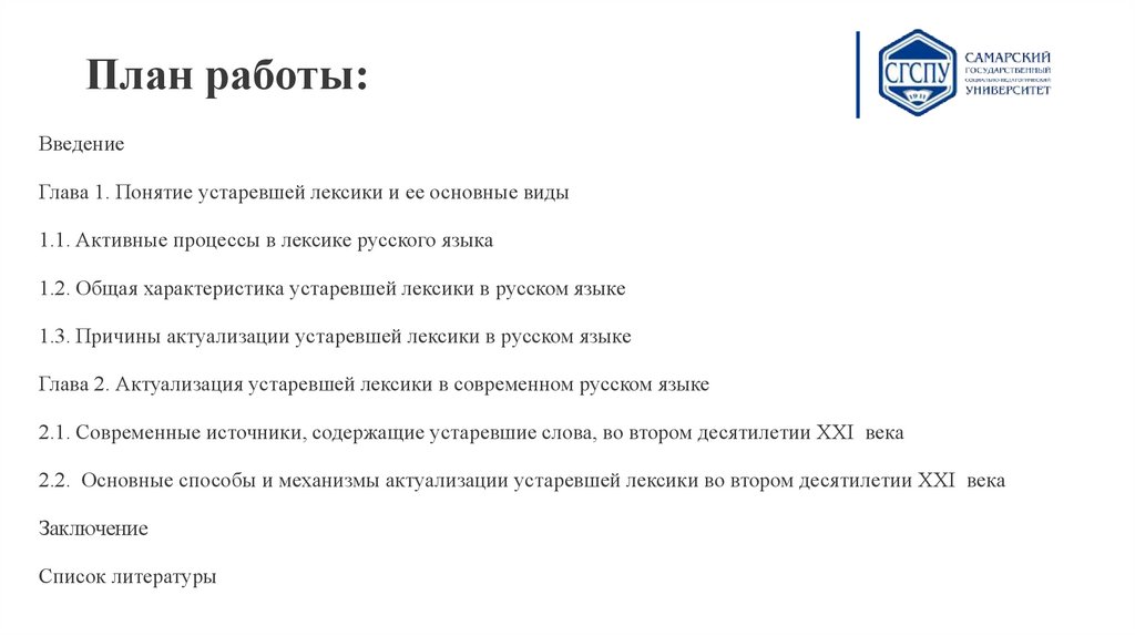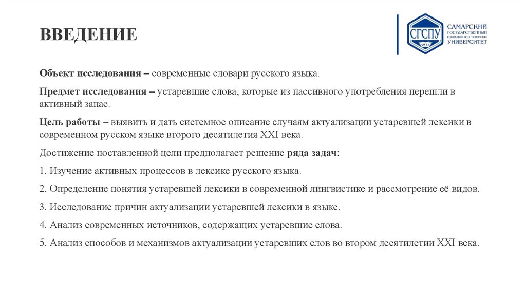 Цель работы – выявить и дать системное описание случаям актуализации устаревшей лексики в