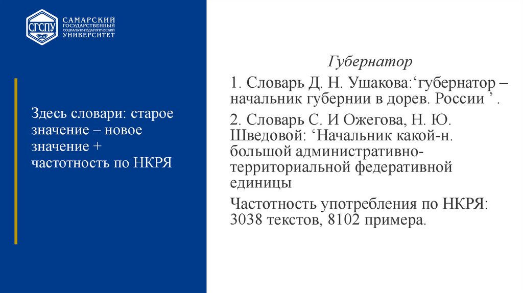 1. Словарь Д. Н. Ушакова:‘губернатор –