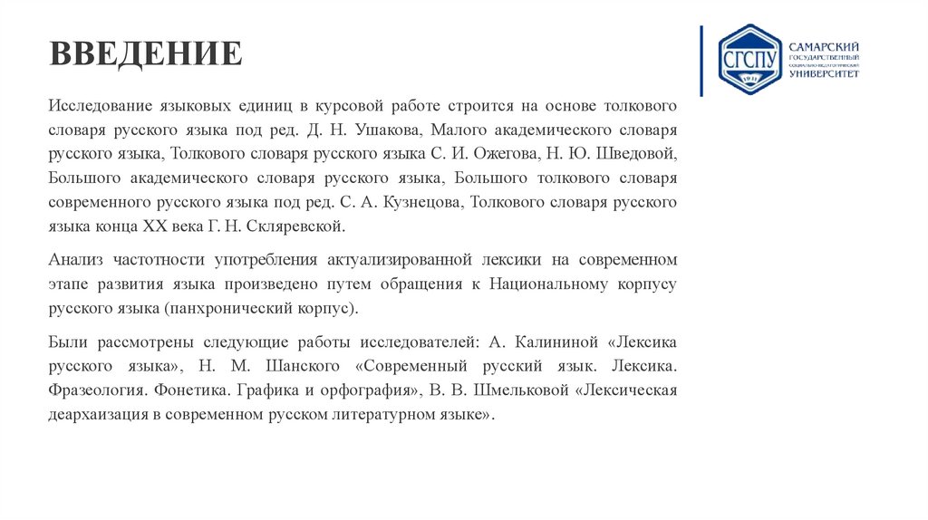 ВВЕДЕНИЕИсследование языковых единиц в курсовой работе строится на основе толкового