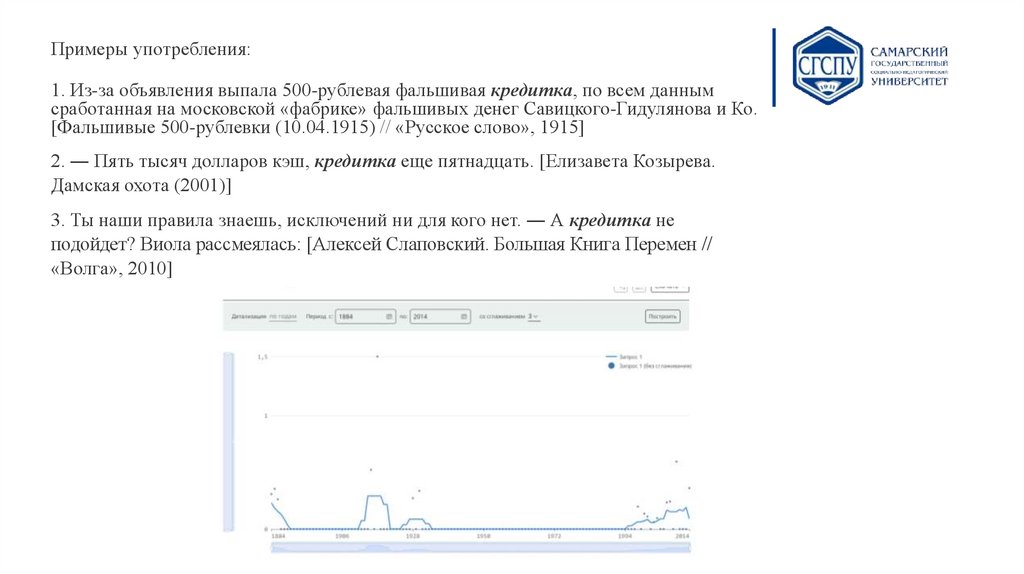 Примеры употребления:1. Из-за объявления выпала 500-рублевая фальшивая кредитка, по всем данным