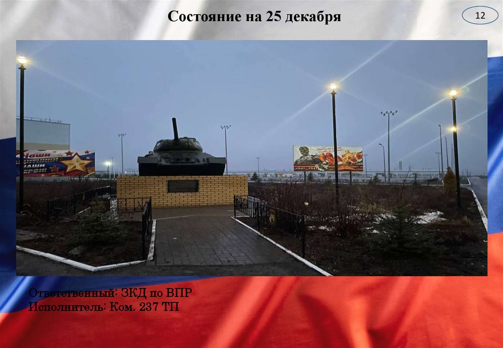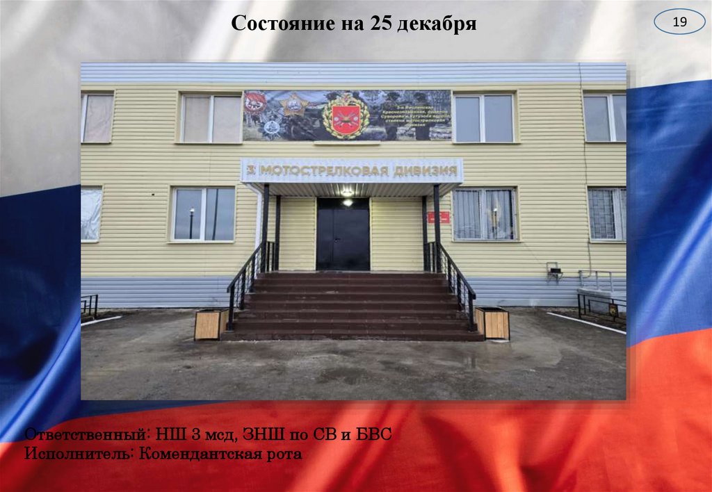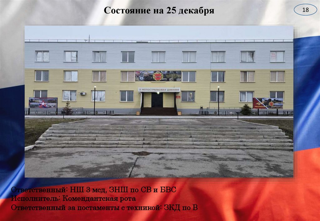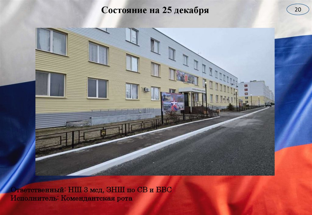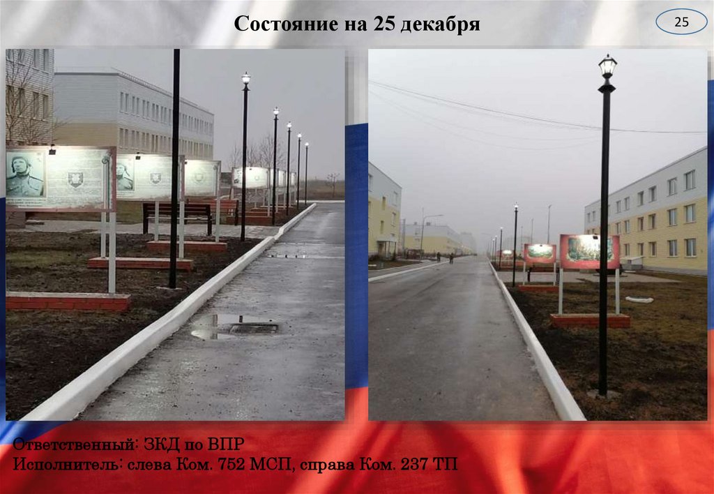 Состояние на 25 декабряОтветственный: НР–ЗНШ, ЗНШ по СВ и БВС