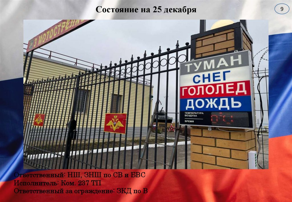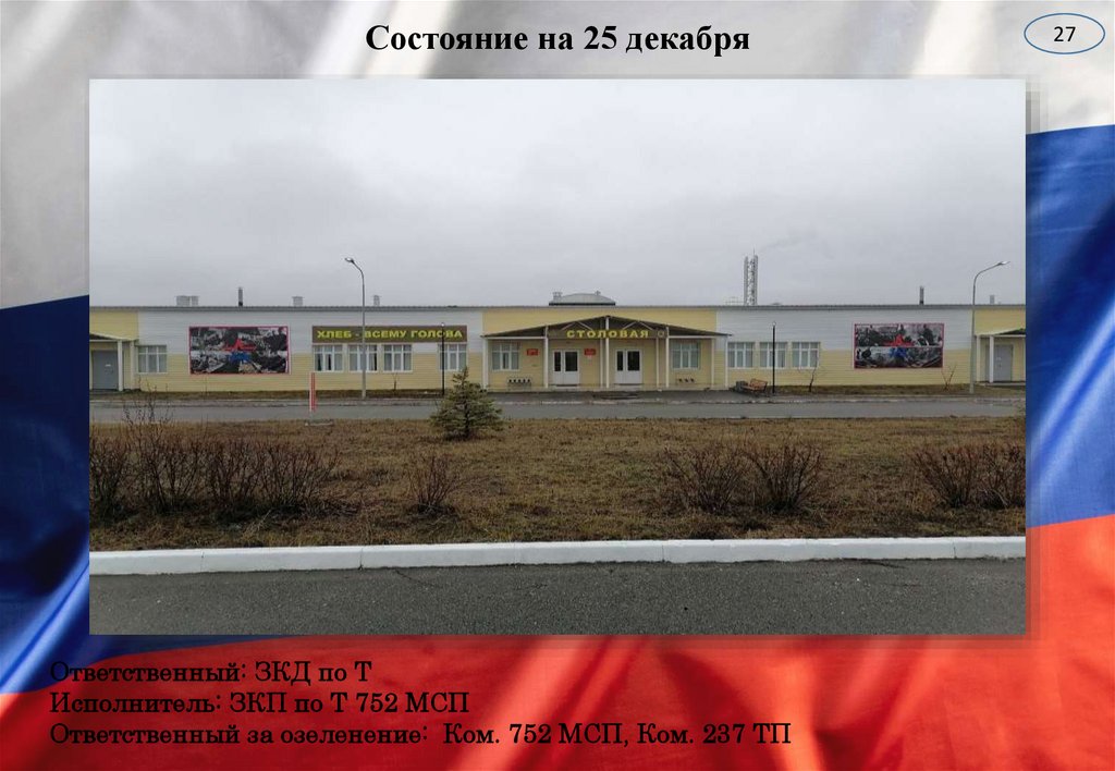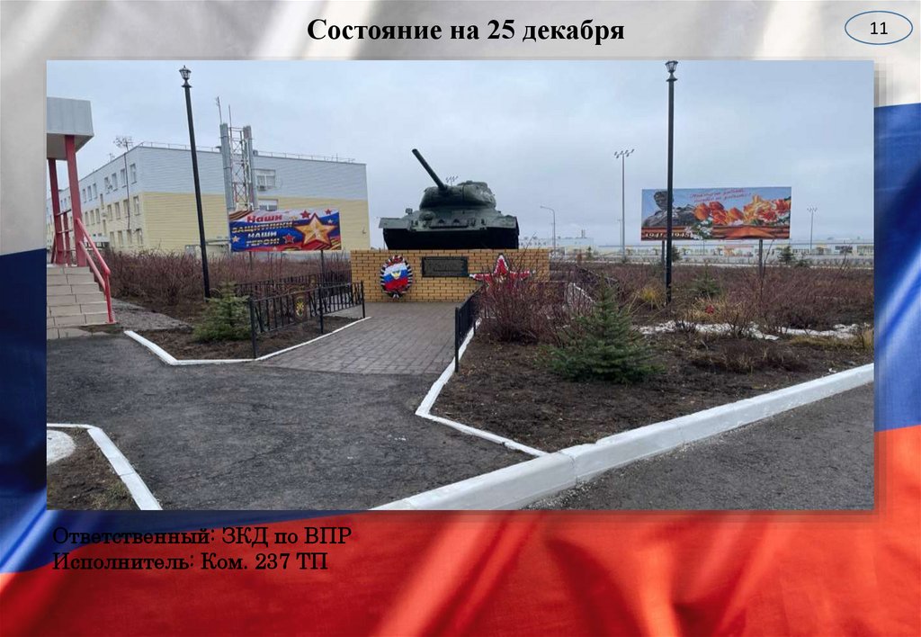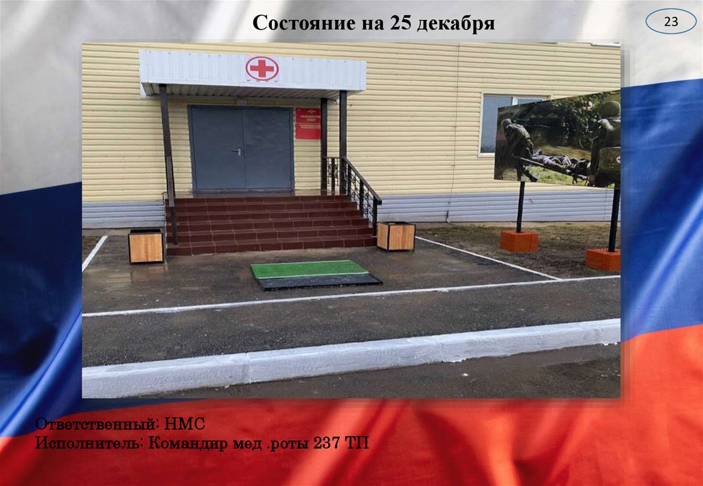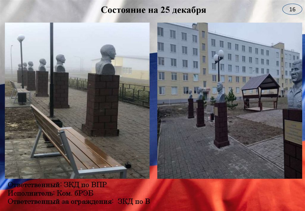 Состояние на 25 декабряОтветственный: НР–ЗНШ, ЗНШ по СВ и БВС