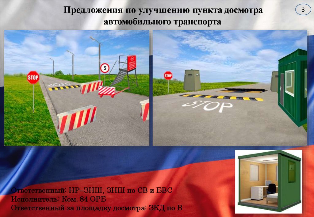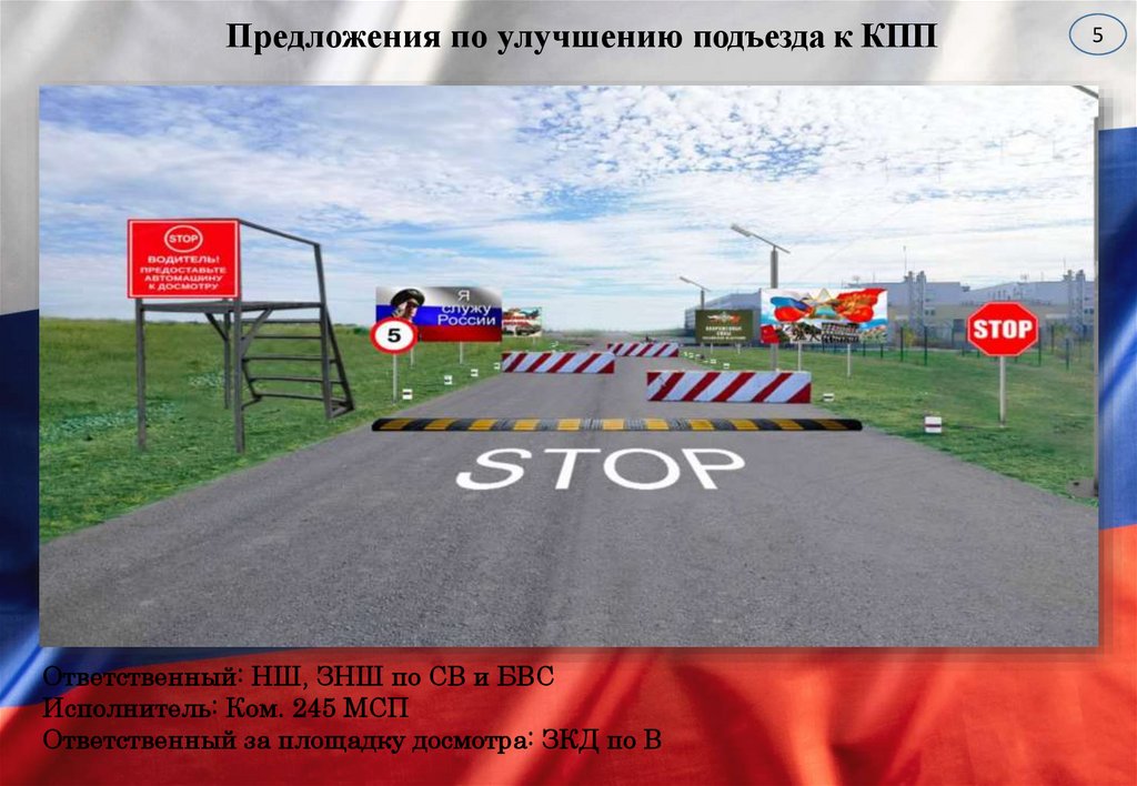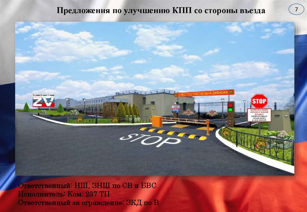 Предложения по улучшению КПП со стороны въездаОтветственный: НШ, ЗНШ по СВ и БВС