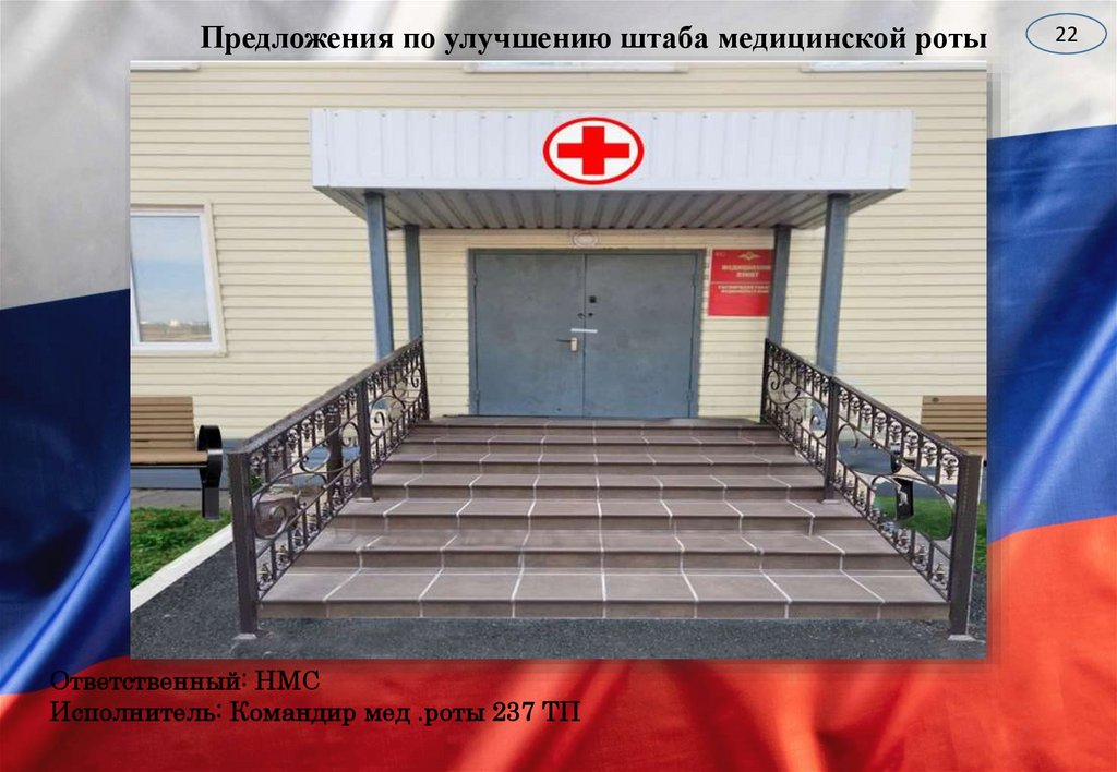 Предложения по улучшению штаба медицинской ротыОтветственный: НМС