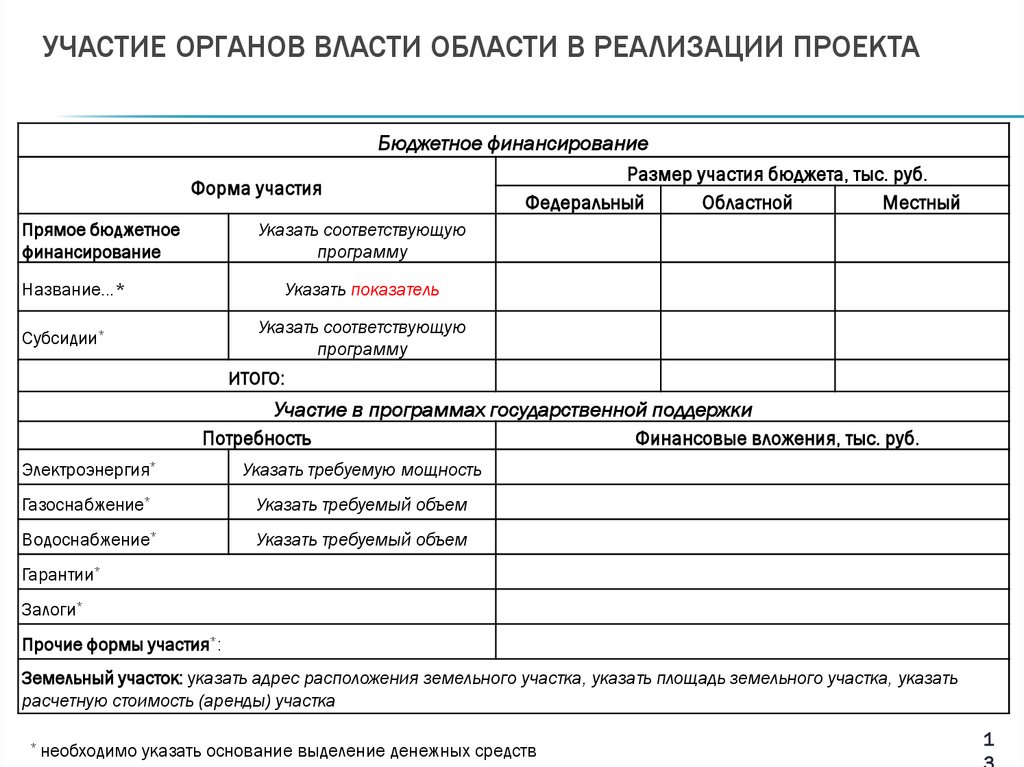 УЧАСТИЕ ОРГАНОВ ВЛАСТИ ОБЛАСТИ В РЕАЛИЗАЦИИ ПРОЕКТАБюджетное финансирование