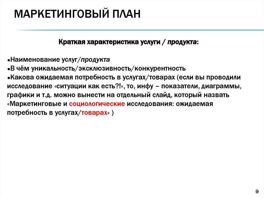 МАРКЕТИНГОВЫЙ ПЛАНКраткая характеристика услуги / продукта: