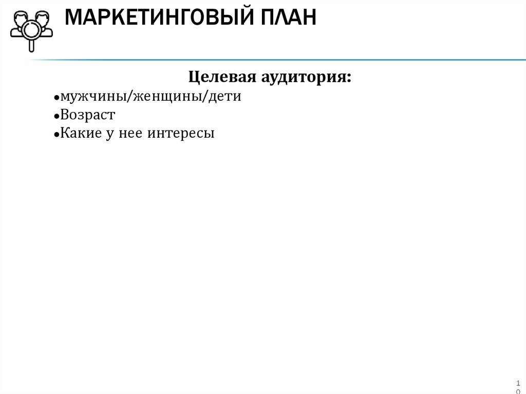 МАРКЕТИНГОВЫЙ ПЛАНЦелевая аудитория: