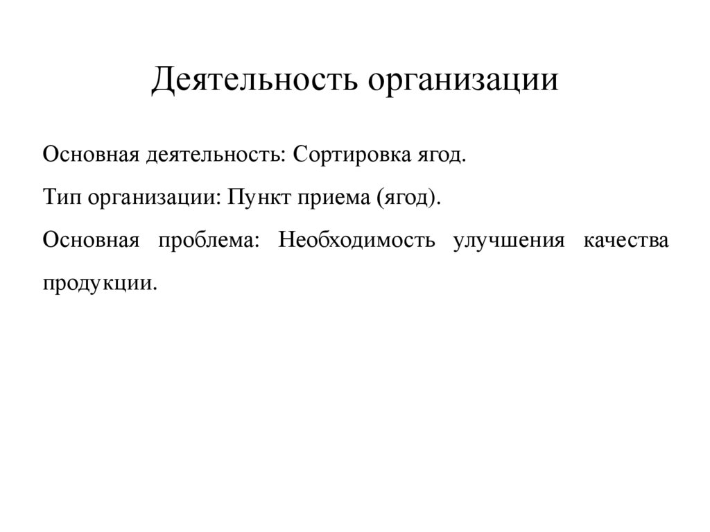 Деятельность организацииОсновная деятельность: Сортировка ягод.