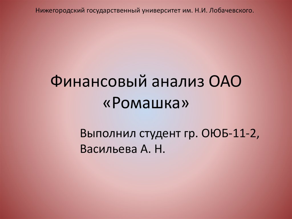 Нижегородский государственный университет им. Н.И. Лобачевского.Финансовый анализ ОАО