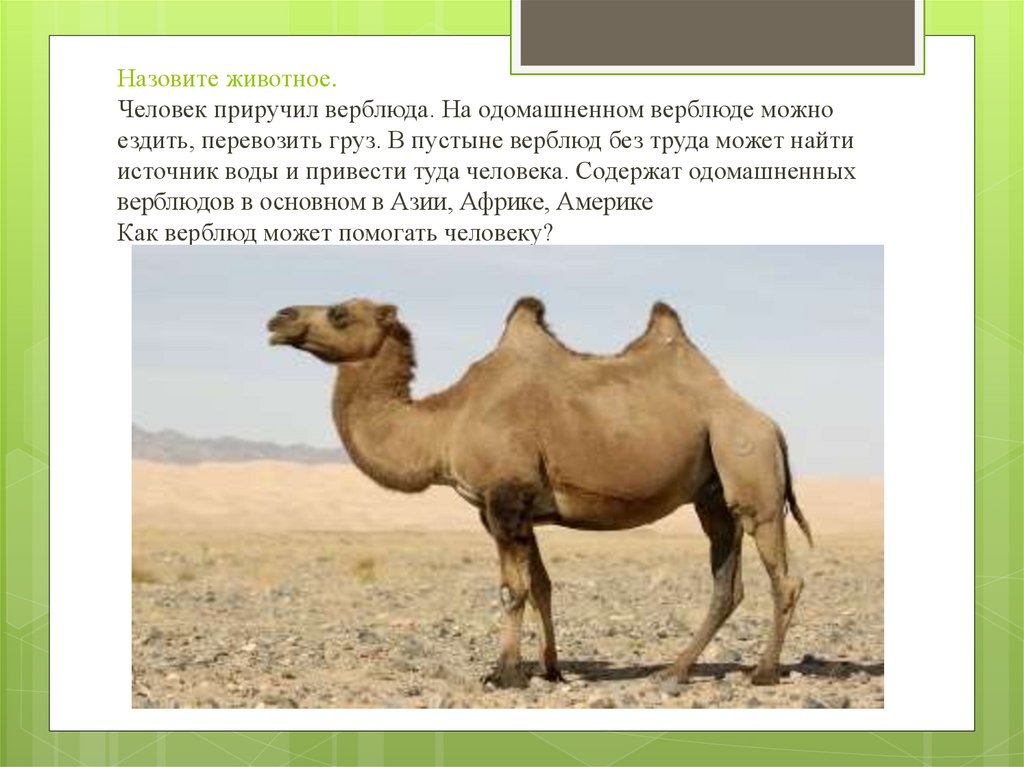 Назовите животное.Человек приручил верблюда. На одомашненном верблюде можно