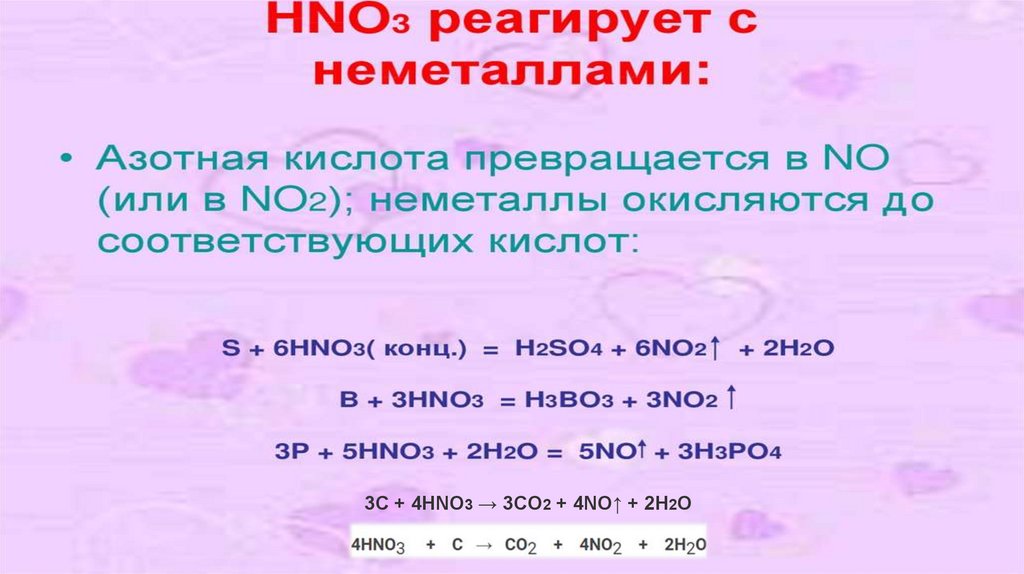 3C + 4HNO3 → 3CO2 + 4NO↑ + 2H2O10.