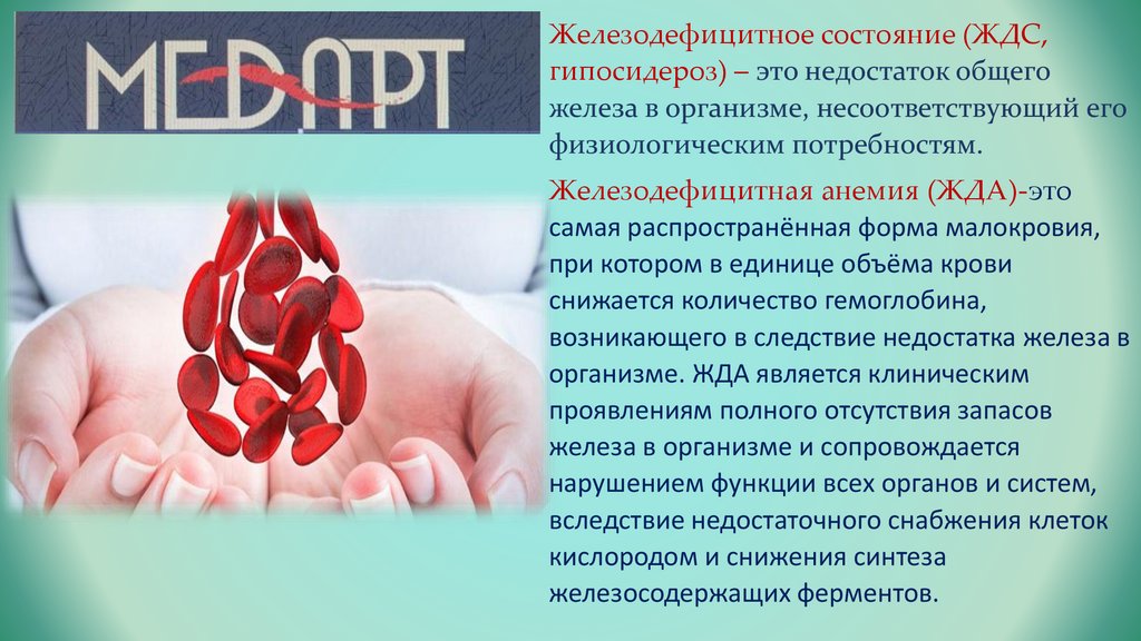 Железодефицитное состояние (ЖДС,гипосидероз) – это недостаток общего