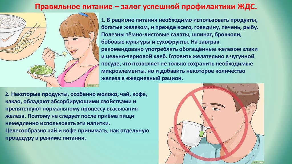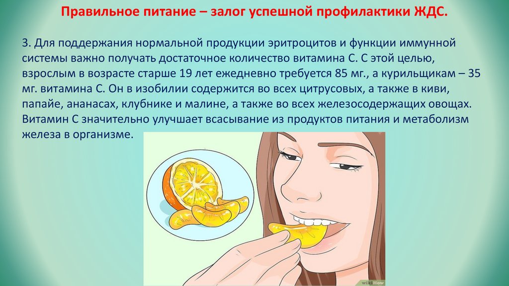 Правильное питание – залог успешной профилактики ЖДС.3. Для поддержания нормальной продукции эритроцитов и функции иммунной