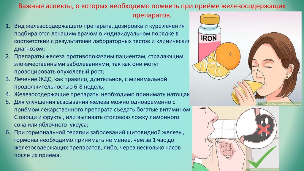 Важные аспекты, о которых необходимо помнить при приёме железосодержащихпрепаратов.