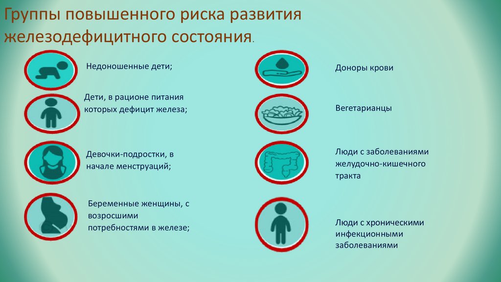Группы повышенного риска развитияжелезодефицитного состояния.