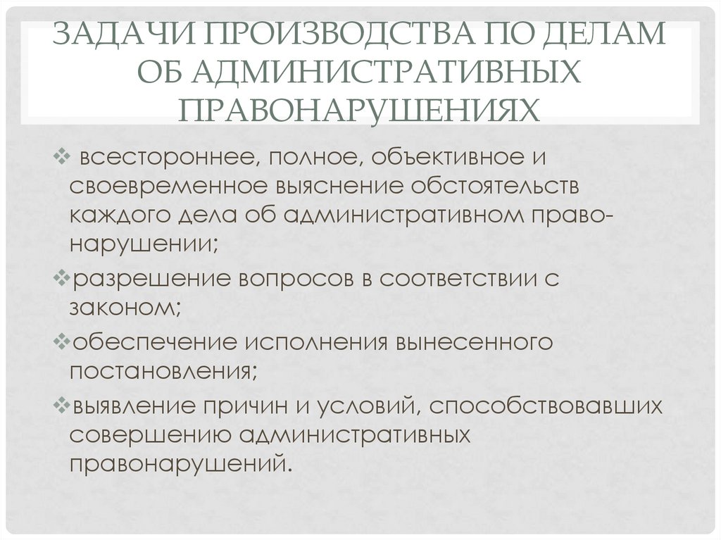 ЗАДАЧИ ПРОИЗВОДСТВА ПО ДЕЛАМОБ АДМИНИСТРАТИВНЫХ