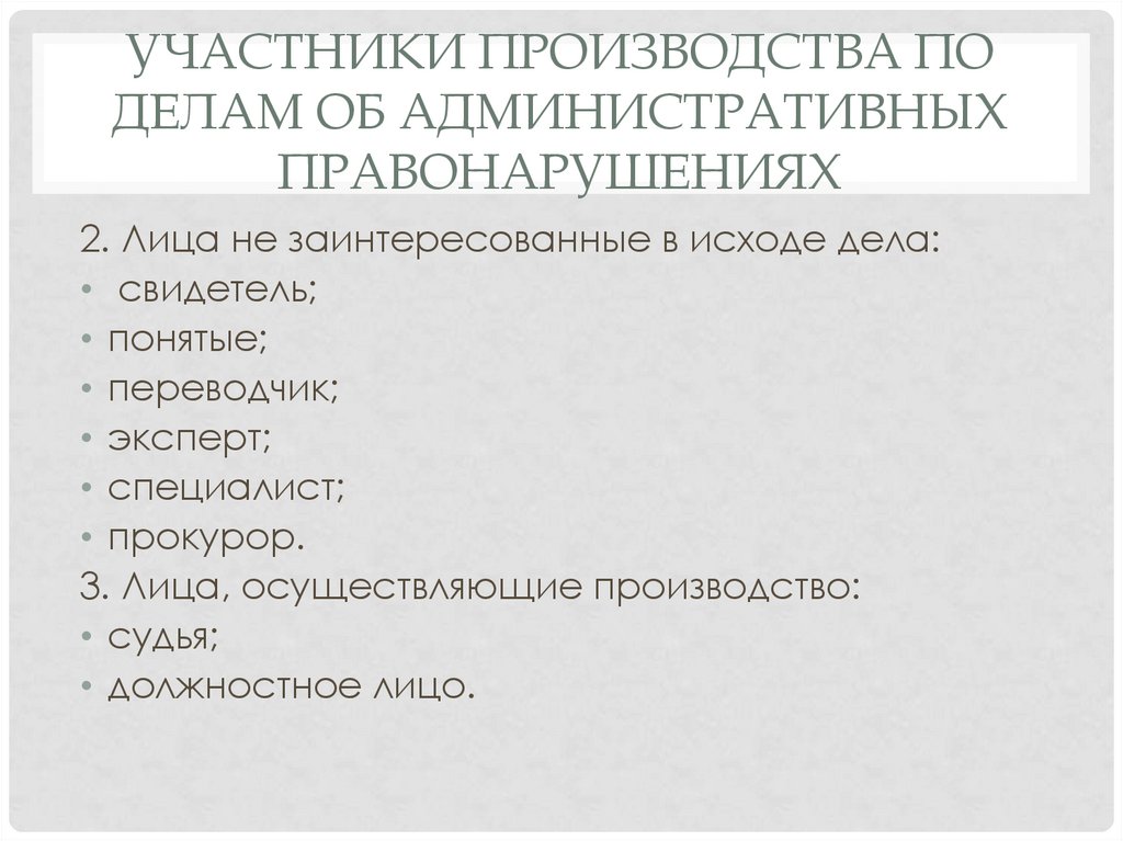 УЧАСТНИКИ ПРОИЗВОДСТВА ПОДЕЛАМ ОБ АДМИНИСТРАТИВНЫХ