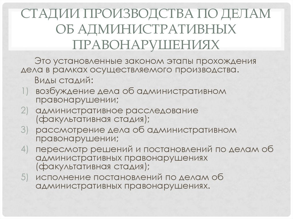 СТАДИИ ПРОИЗВОДСТВА ПО ДЕЛАМОБ АДМИНИСТРАТИВНЫХ