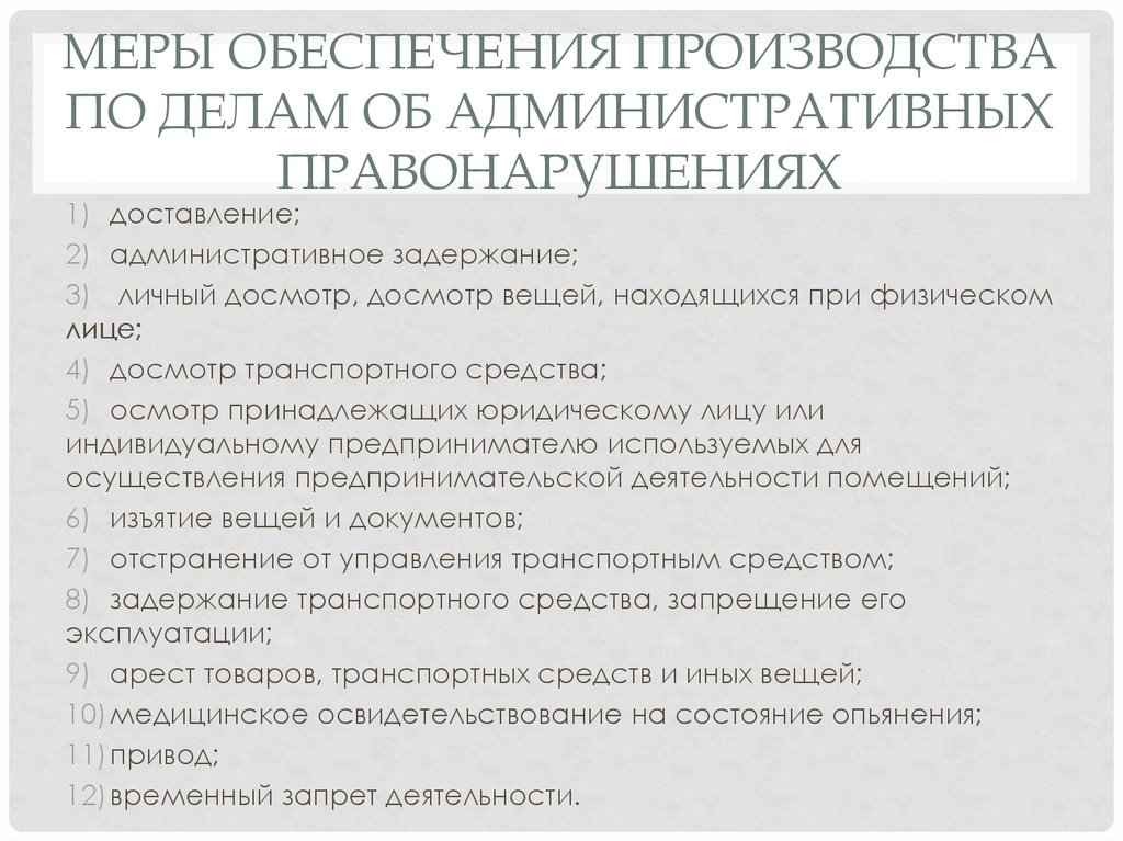 МЕРЫ ОБЕСПЕЧЕНИЯ ПРОИЗВОДСТВАПО ДЕЛАМ ОБ АДМИНИСТРАТИВНЫХ