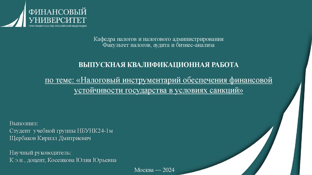 Кафедра налогов и налогового администрированияФакультет налогов, аудита и бизнес-анализа