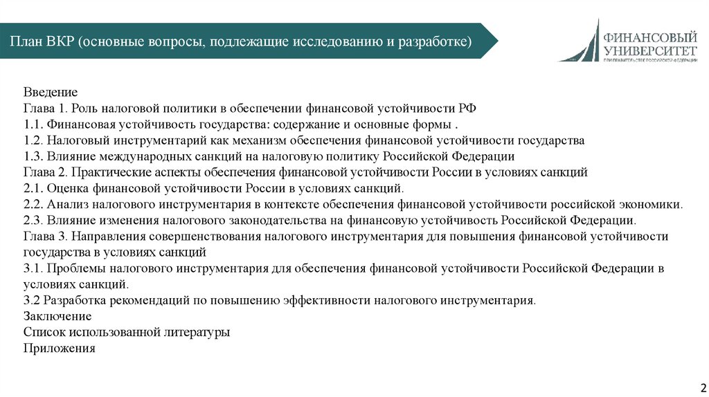 Глава 1. Роль налоговой политики в обеспечении финансовой устойчивости РФ