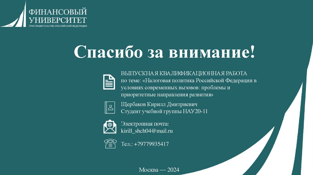 Спасибо за внимание!ВЫПУСКНАЯ КВАЛИФИКАЦИОННАЯ РАБОТА