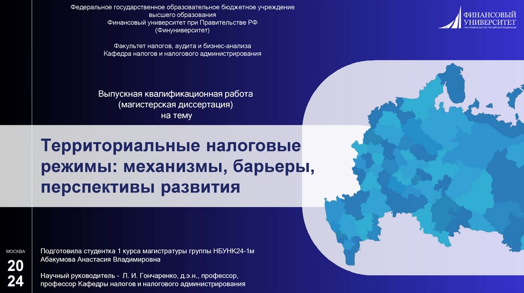 Научный руководитель – Л. И. Гончаренко, д.э.н., профессор,