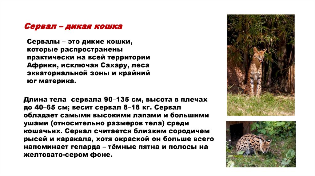 Сервал – дикая кошкаСервалы – это дикие кошки,