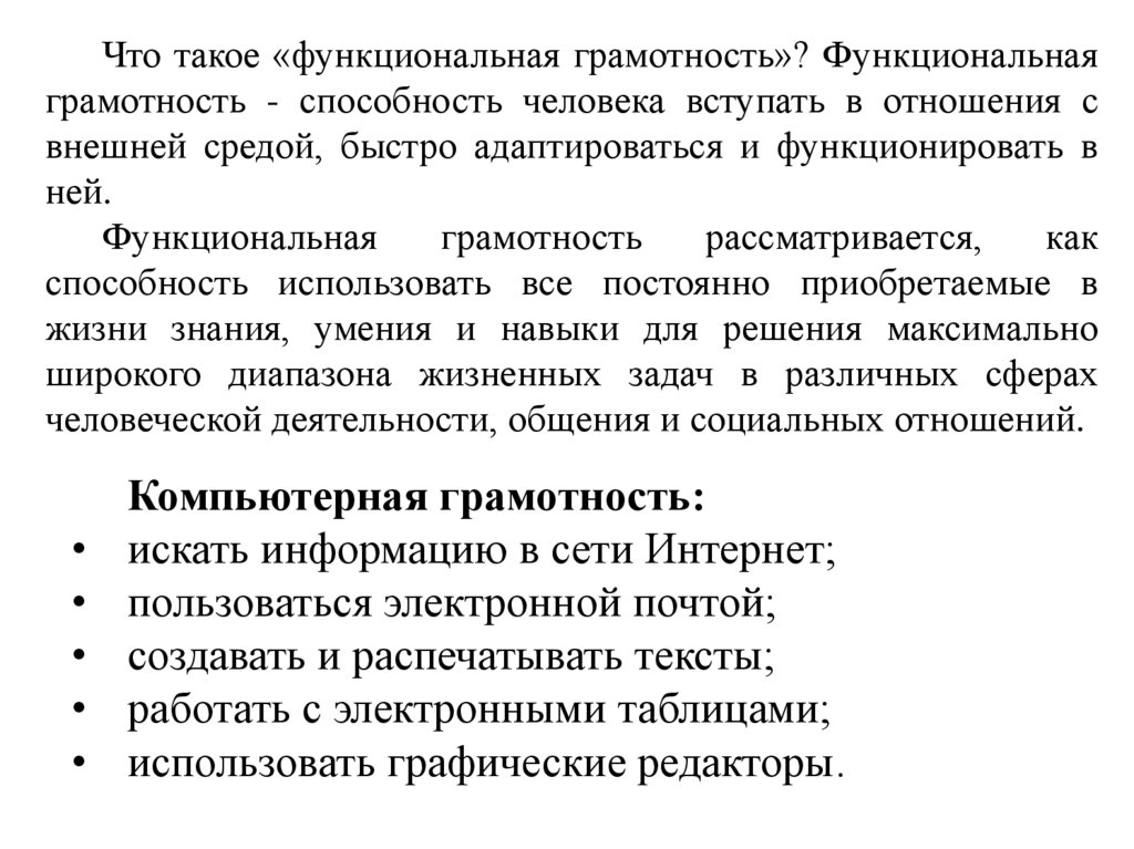 Что такое «функциональная грамотность»? Функциональнаяграмотность - способность человека вступать в отношения с