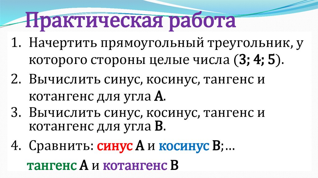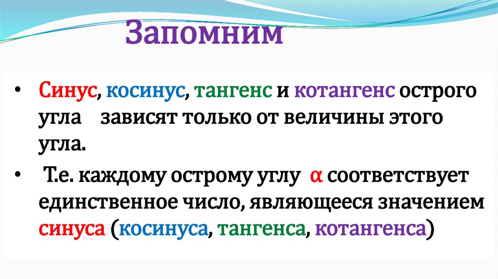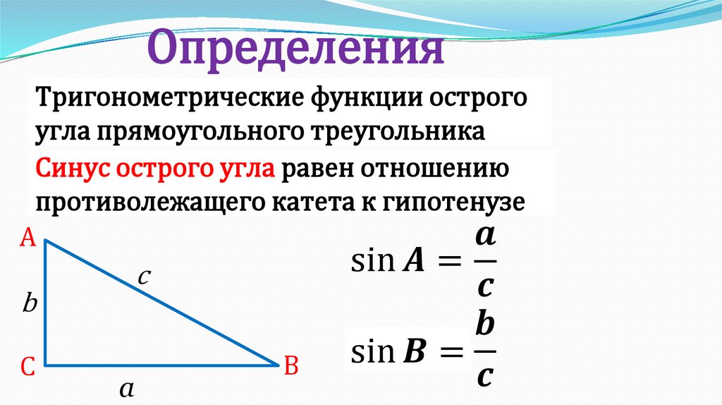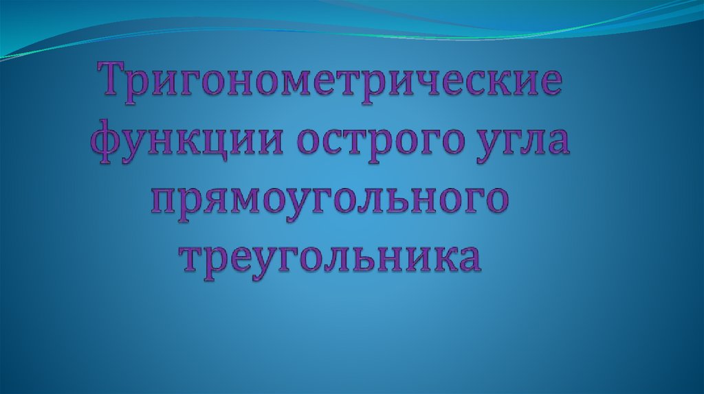 Тригонометрические функции острого угла прямоугольного треугольника (8 класс)