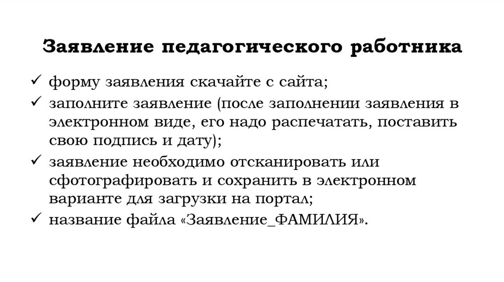 Заявление педагогического работникаформу заявления скачайте с сайта;