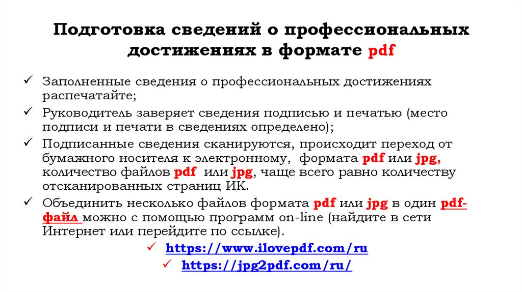 Подготовка сведений о профессиональныхдостижениях в формате pdf