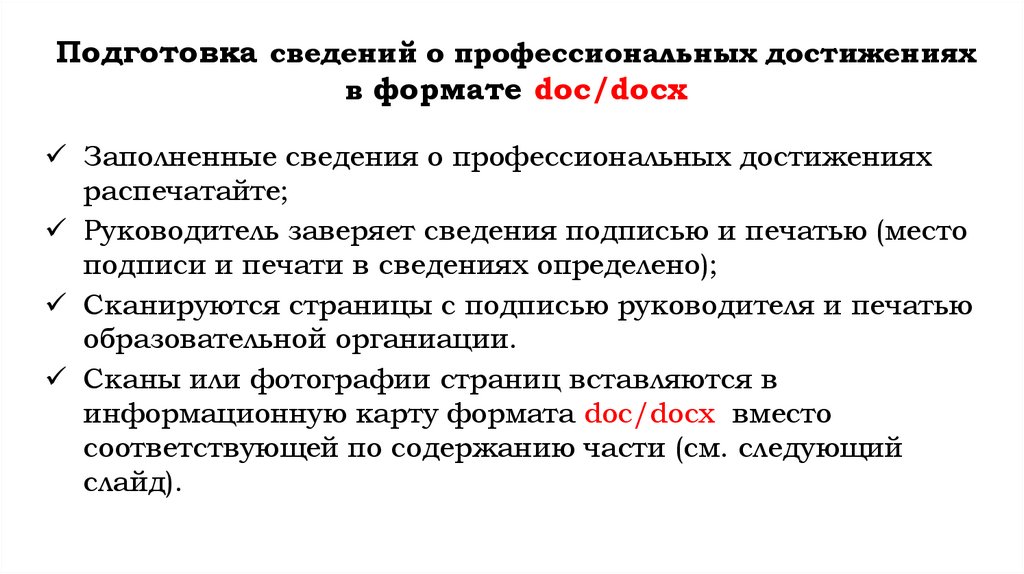 Подготовка сведений о профессиональных достиженияхв формате doc/docx