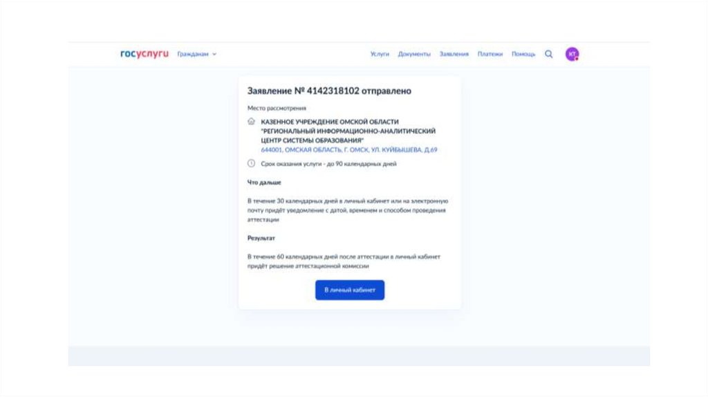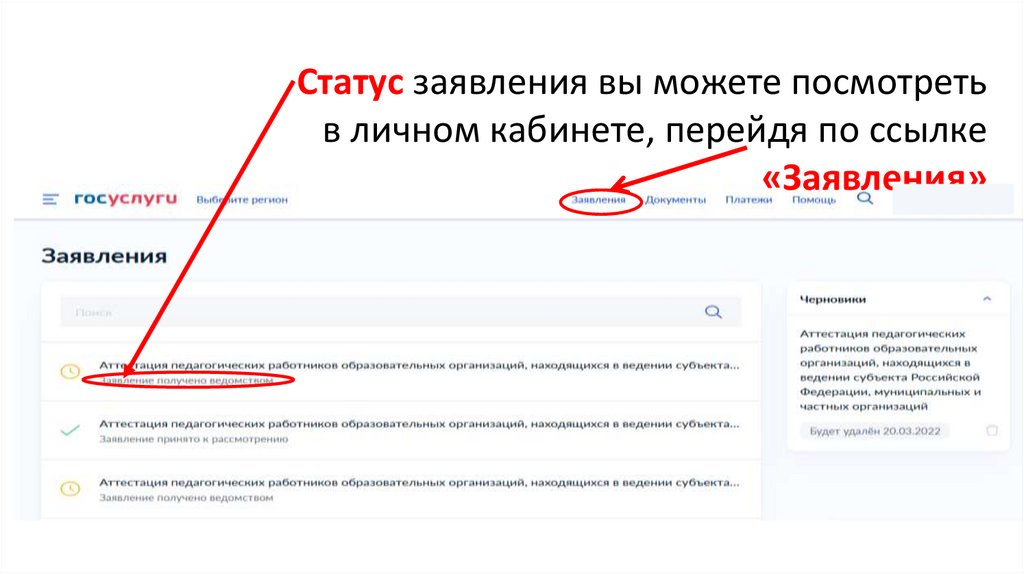 Статус заявления вы можете посмотретьв личном кабинете, перейдя по ссылке