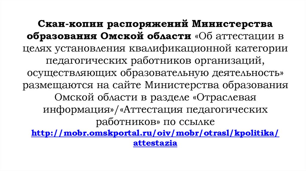 Скан-копии распоряжений Министерстваобразования Омской области «Об аттестации в