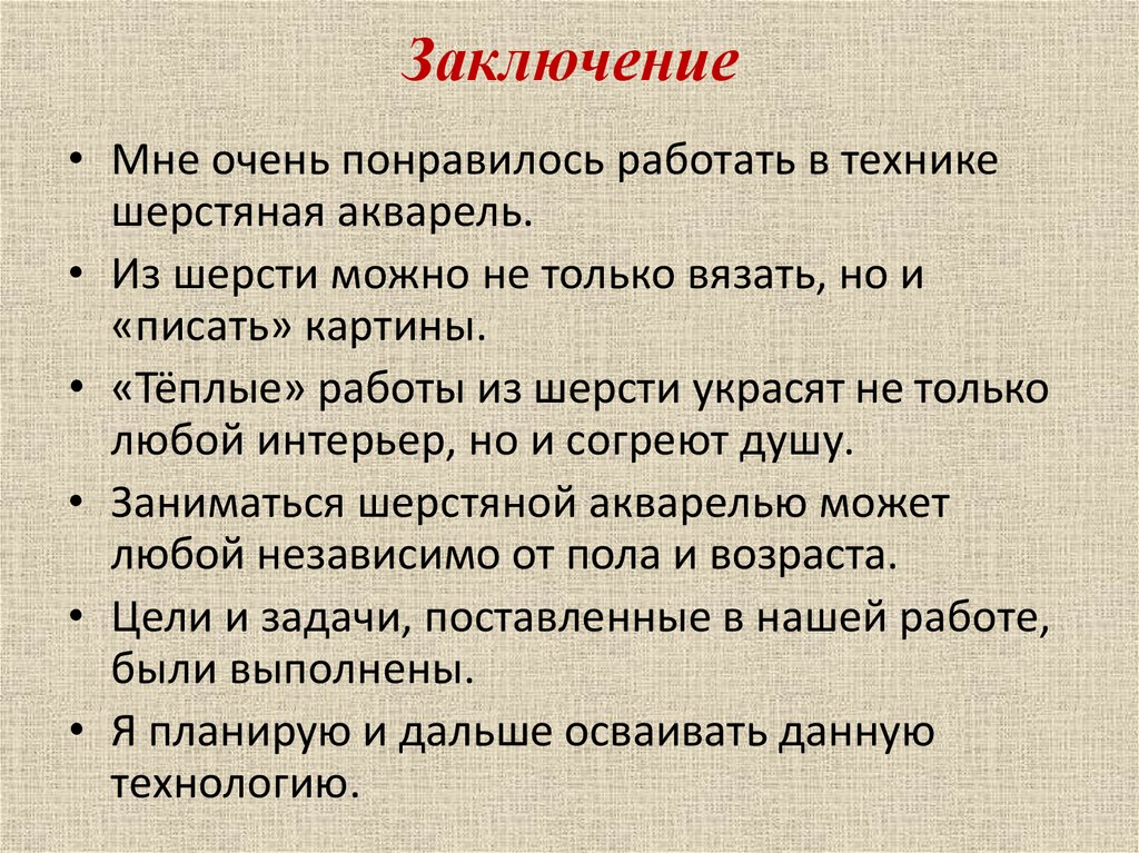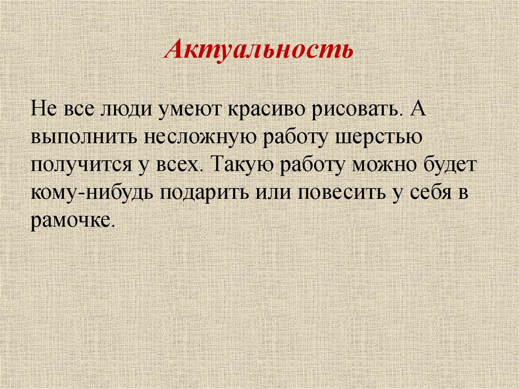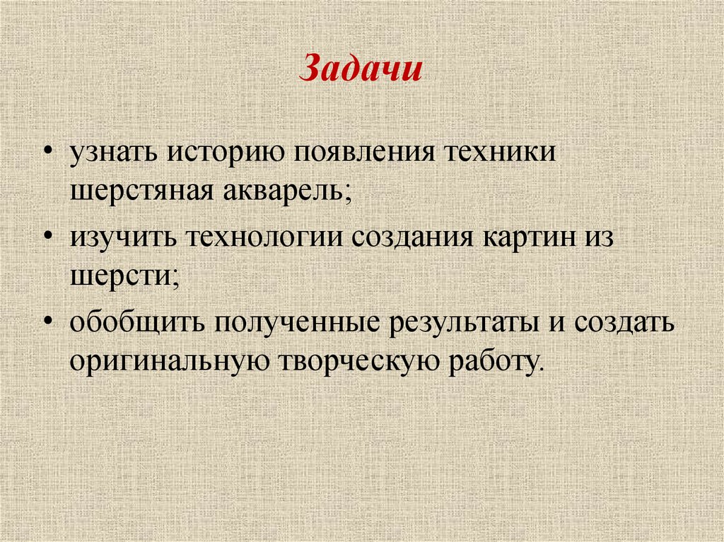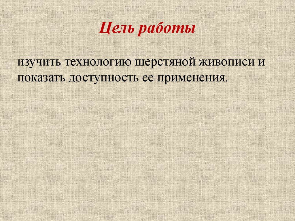 Цель работыизучить технологию шерстяной живописи и
