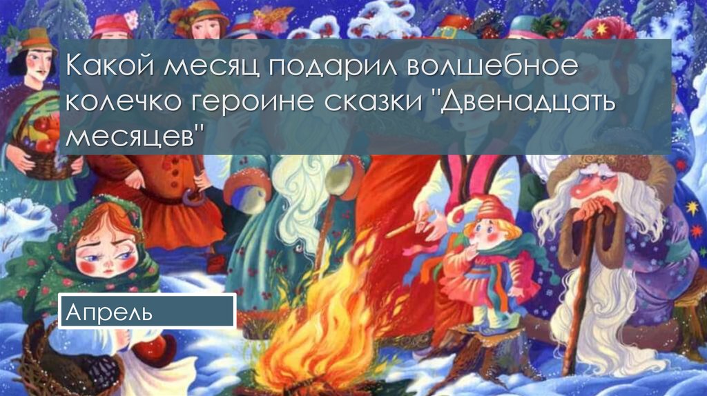 Какой месяц подарил волшебноеколечко героине сказки "Двенадцать