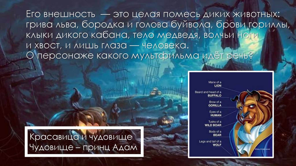 Его внешность — это целая помесь диких животных:грива льва, бородка и голова буйвола, брови гориллы,