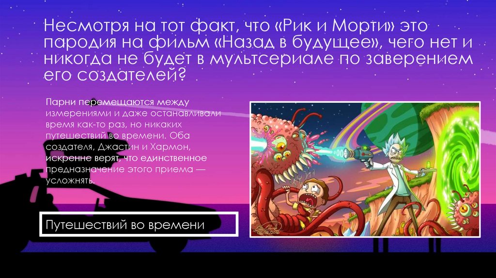 Несмотря на тот факт, что «Рик и Морти» этопародия на фильм «Назад в будущее», чего нет и
