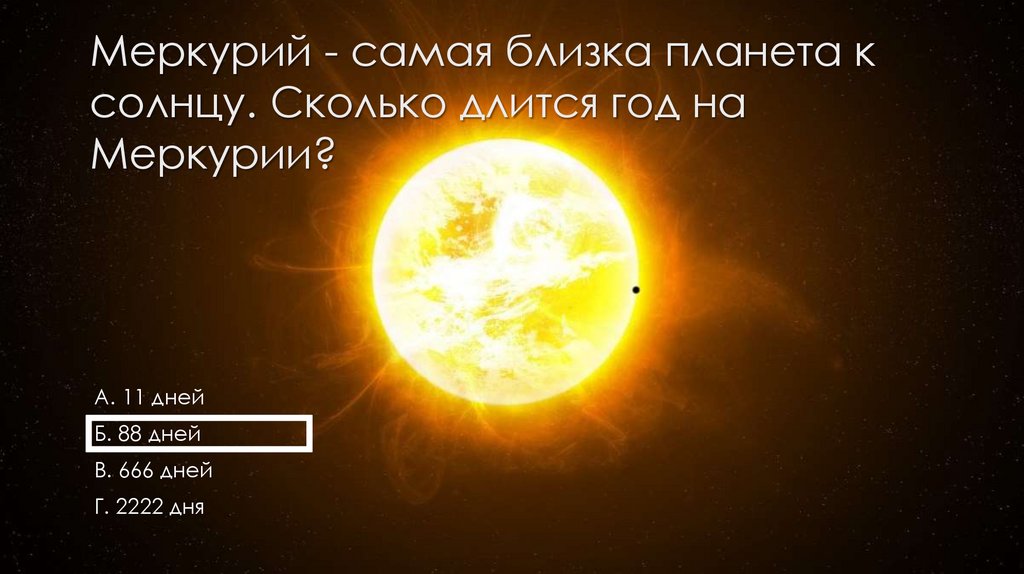 Меркурий - самая близка планета ксолнцу. Сколько длится год на