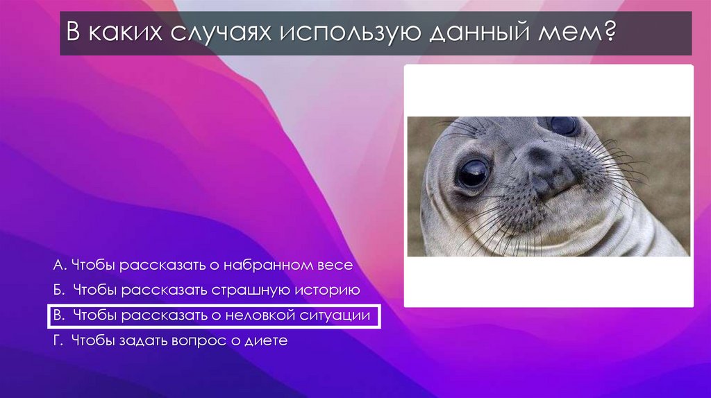 В каких случаях использую данный мем?А. Чтобы рассказать о набранном весе