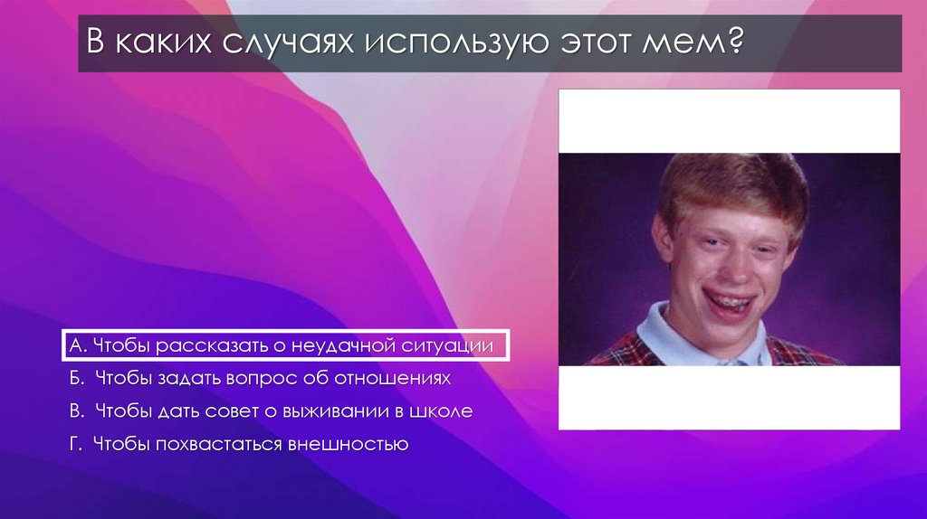 В каких случаях использую этот мем?А. Чтобы рассказать о неудачной ситуации