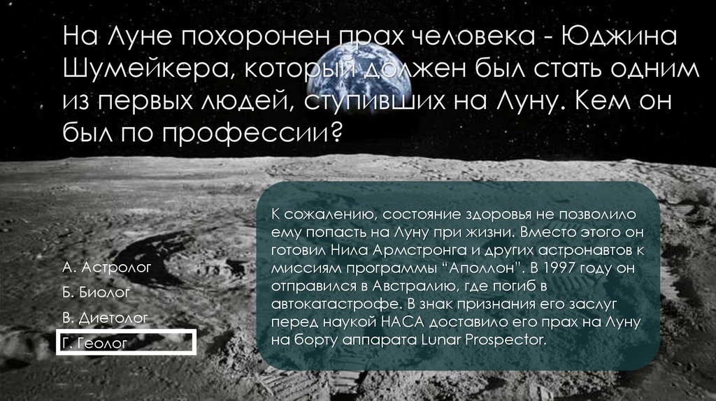 На Луне похоронен прах человека - ЮджинаШумейкера, который должен был стать одним