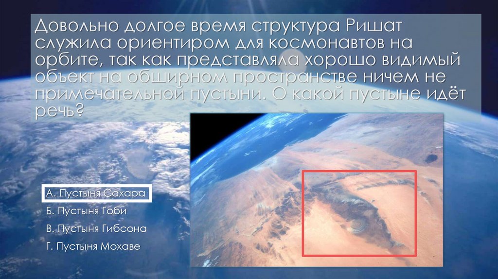Довольно долгое время структура Ришатслужила ориентиром для космонавтов на