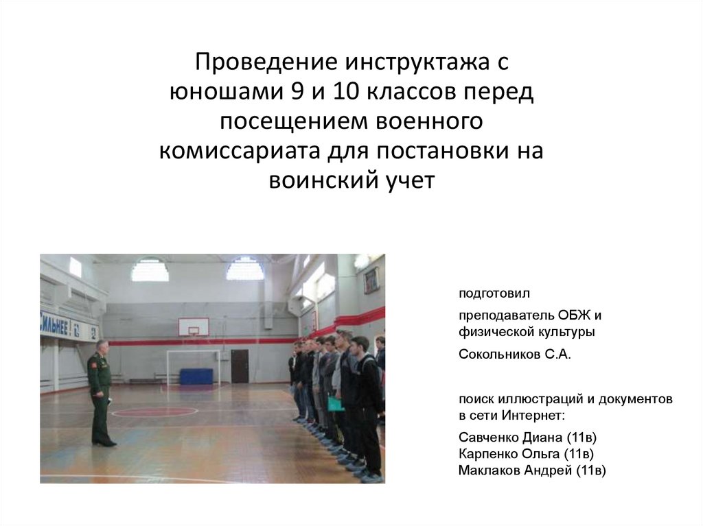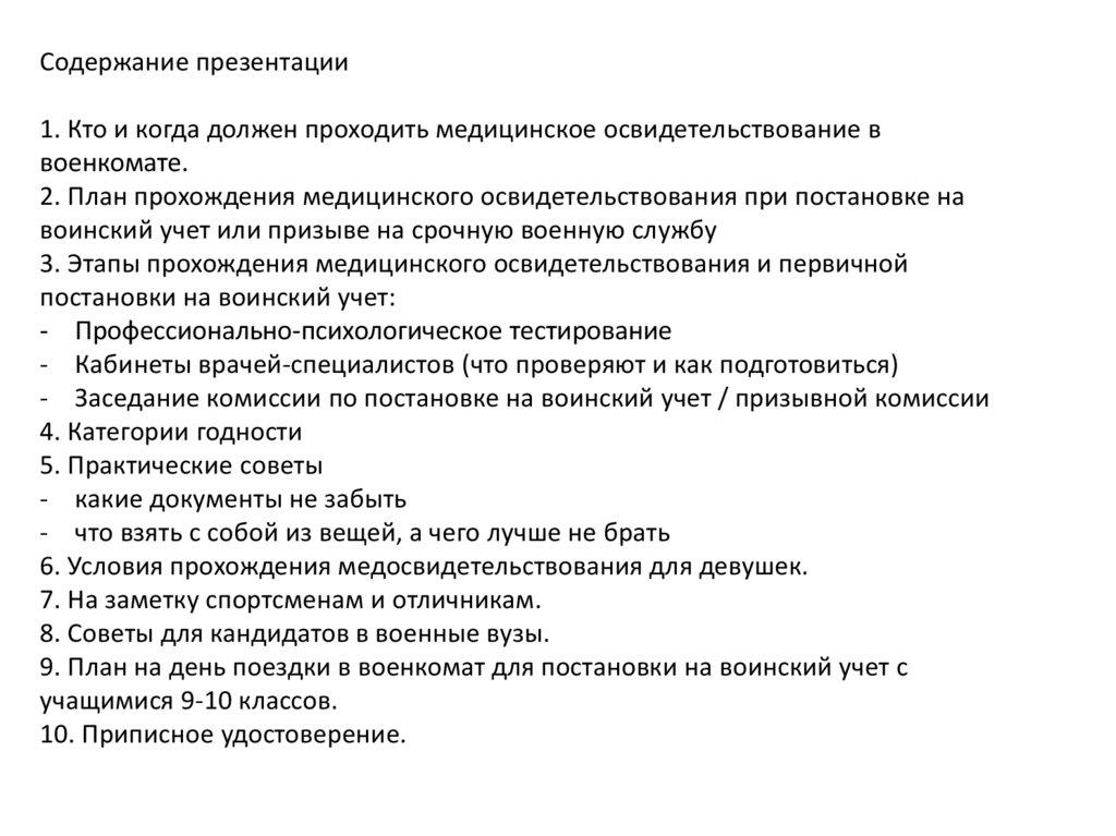 • Данная презентация является наглядным пособием для проведенияинструктажа и подготовки учеников к посещению военного комиссариата.