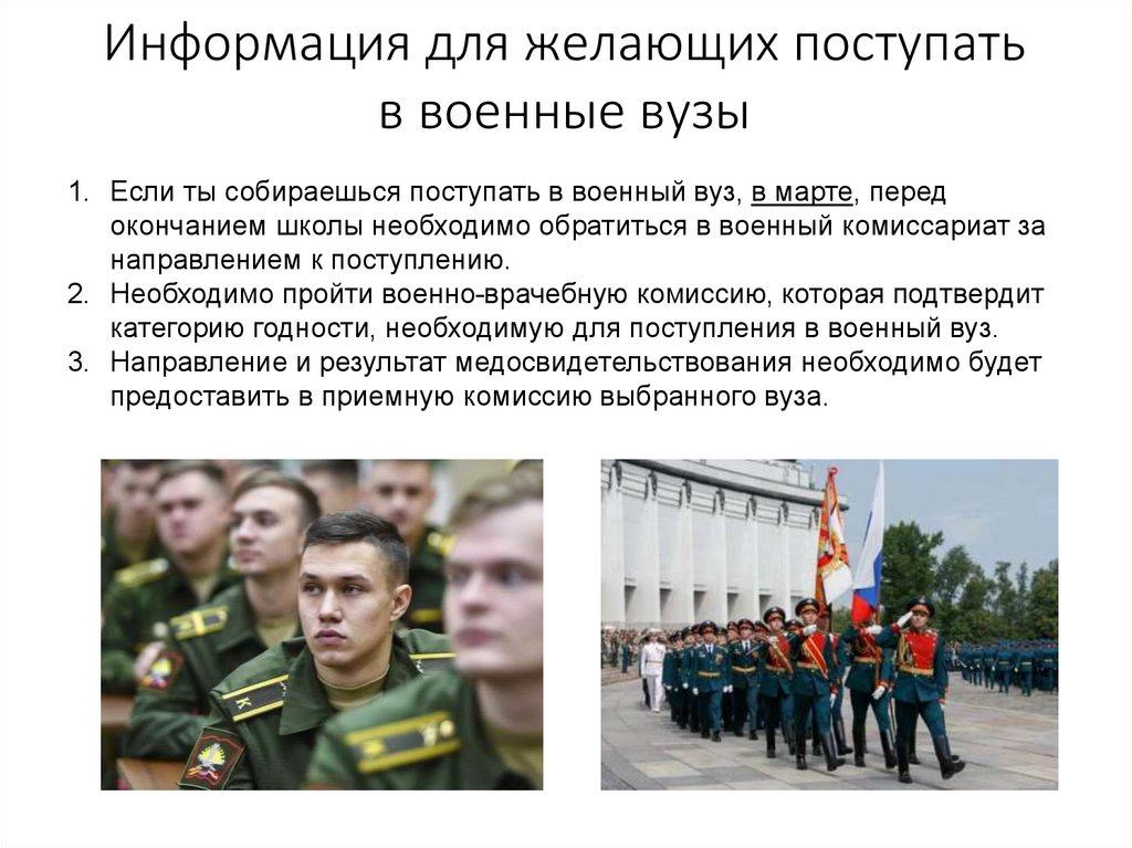 1. Если ты собираешься поступать в военный вуз, в марте, перед