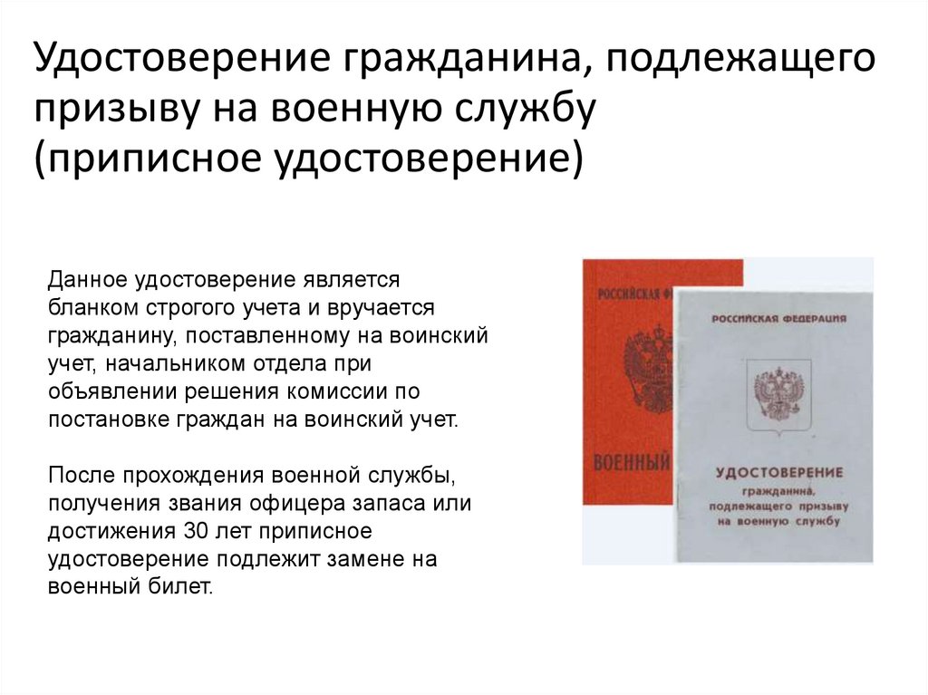 Удостоверение гражданина, подлежащегопризыву на военную службу